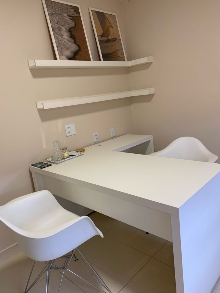 Ambiente moderno, acolhedor e preparado para você